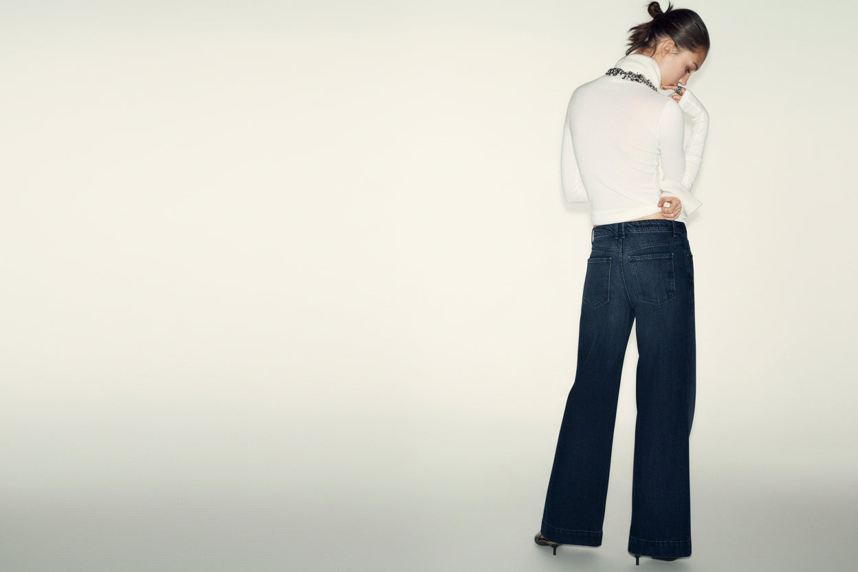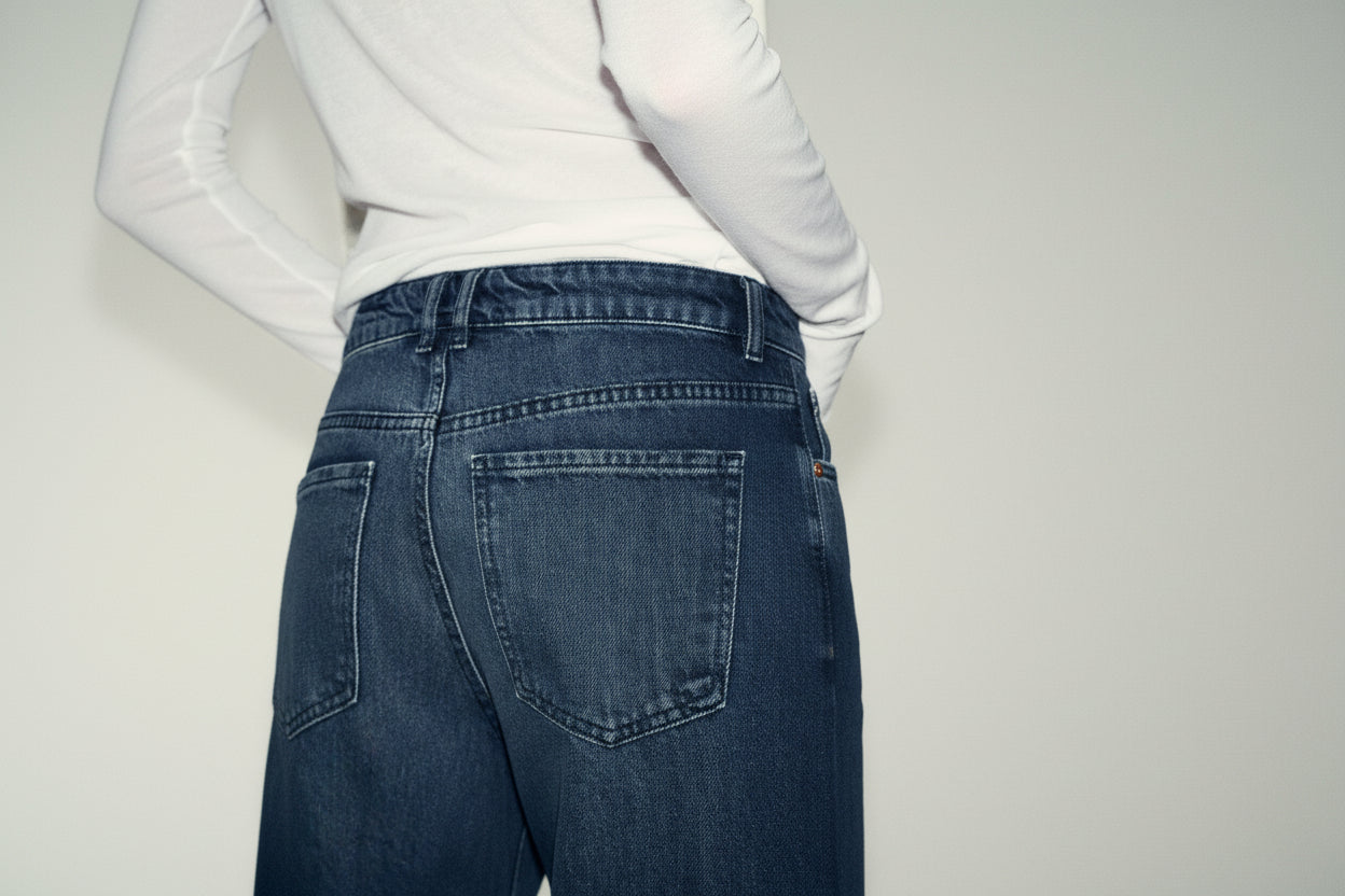 Mid Waist Wide Leg Loose Fit Dark Blue washed
