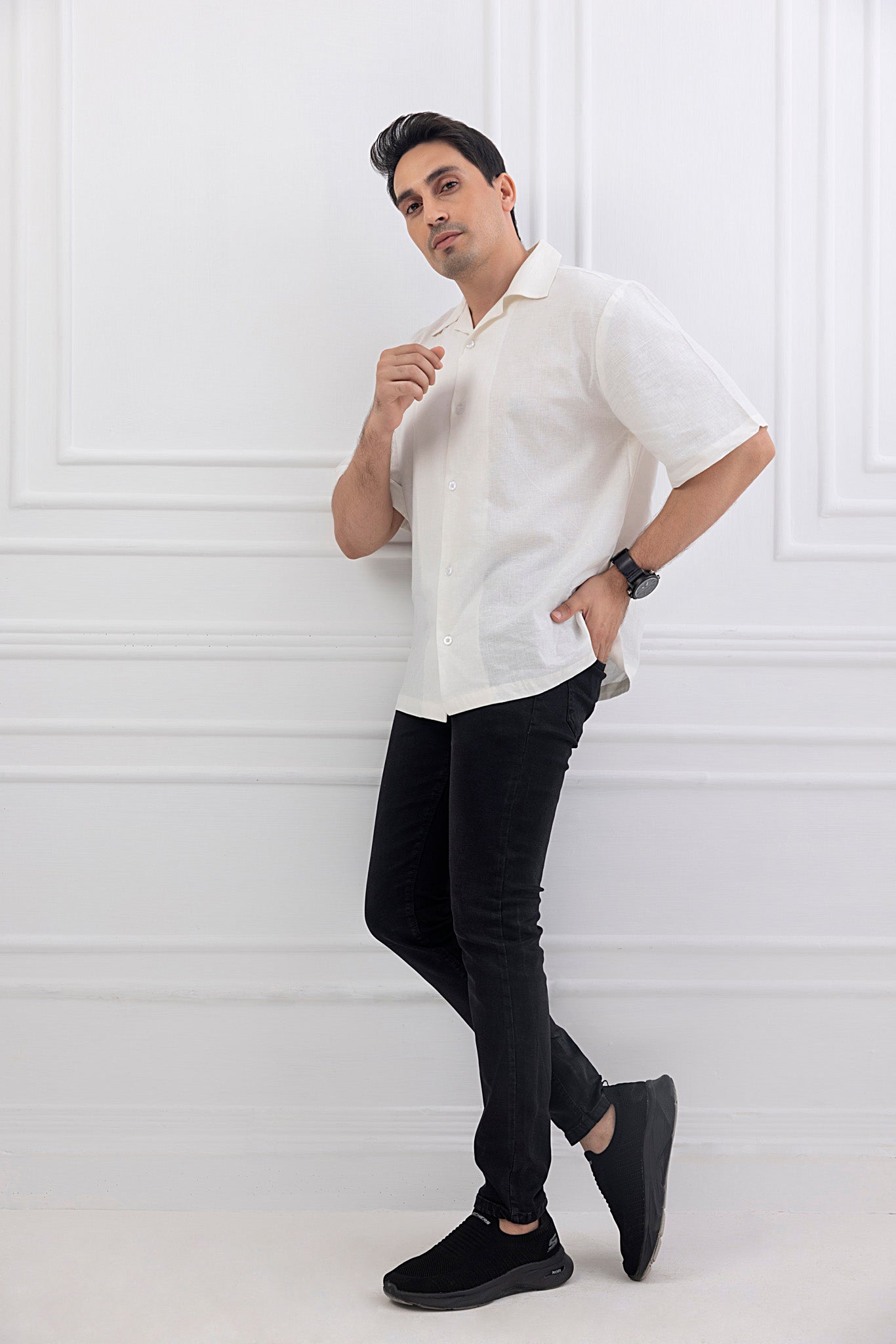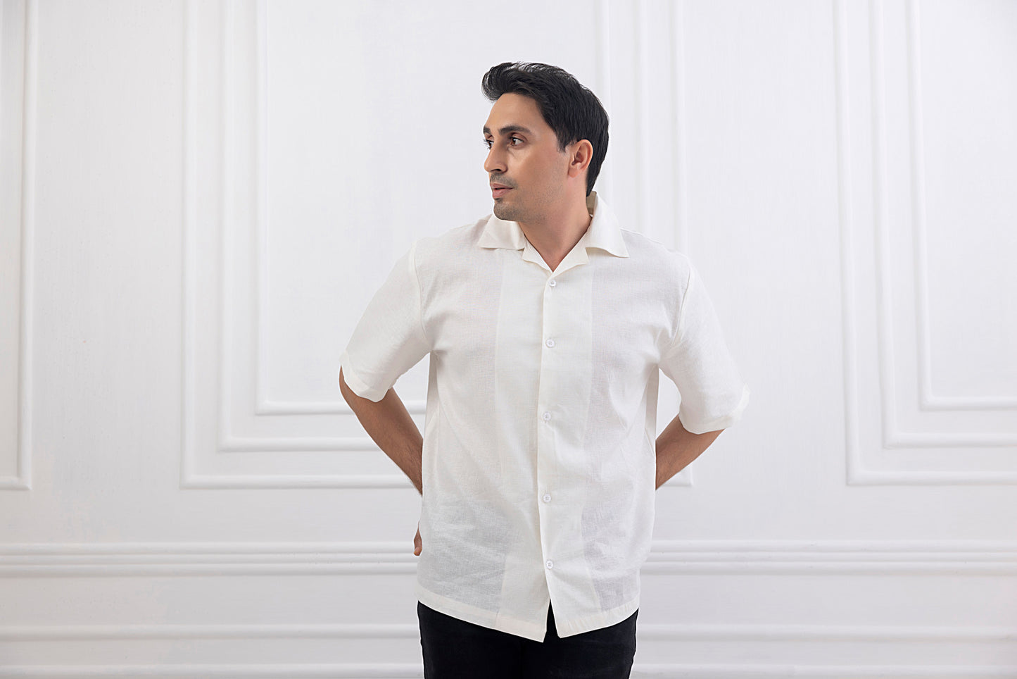 أحبك "I love you" Cuban Collar Embroidered Shirt