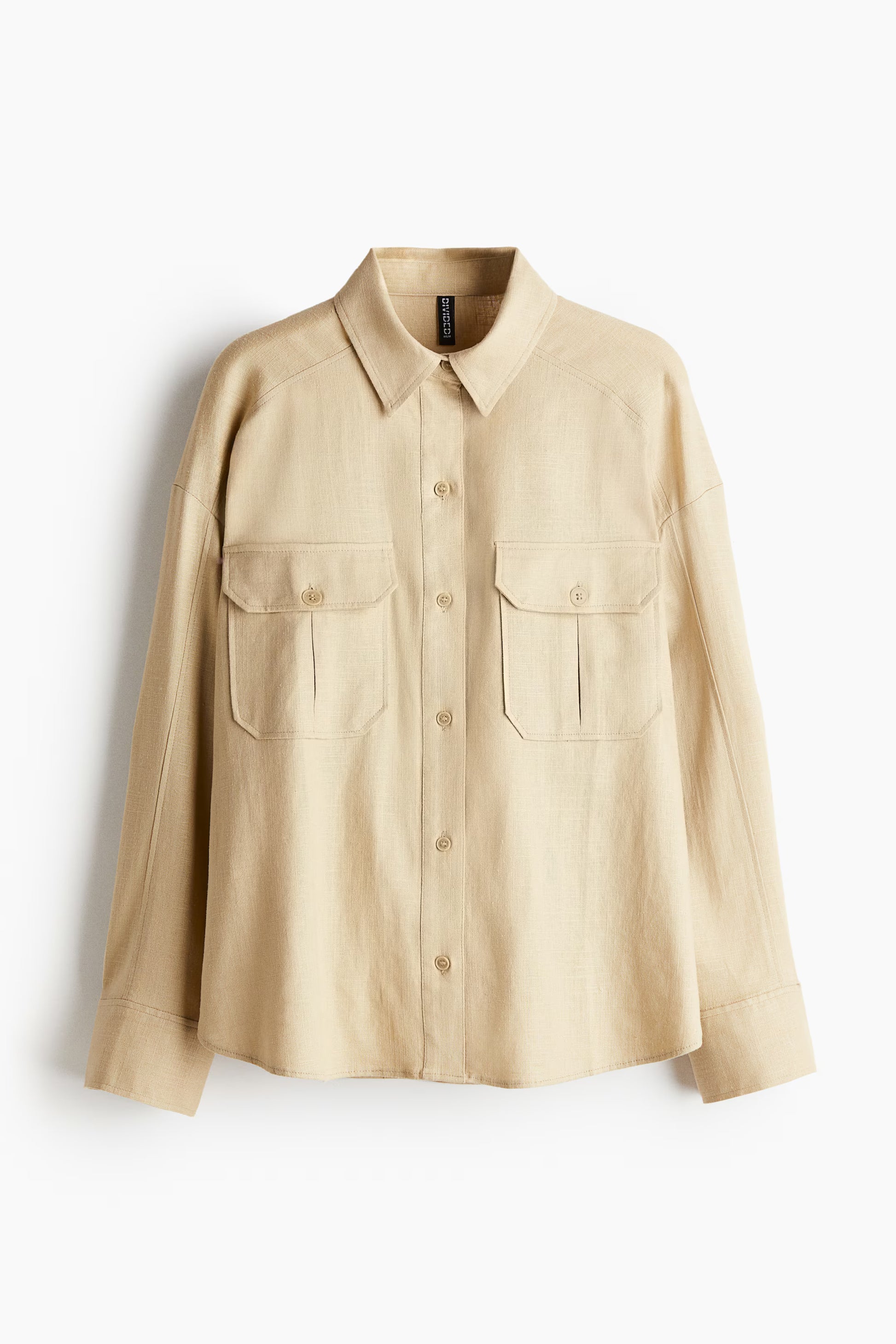 Oversized Linen-blend Cargo Shirt Beige